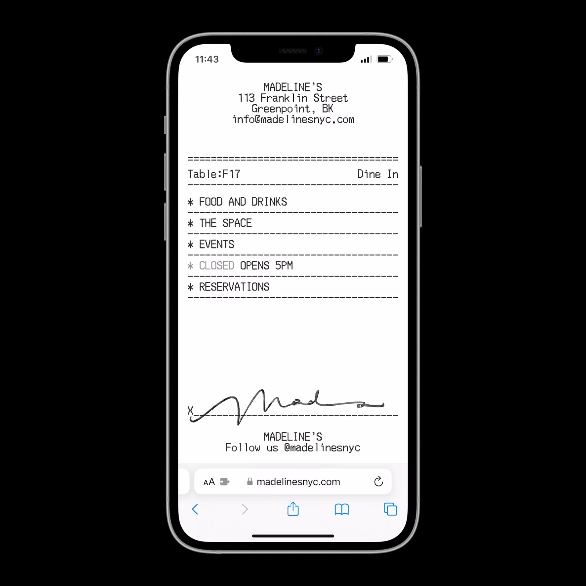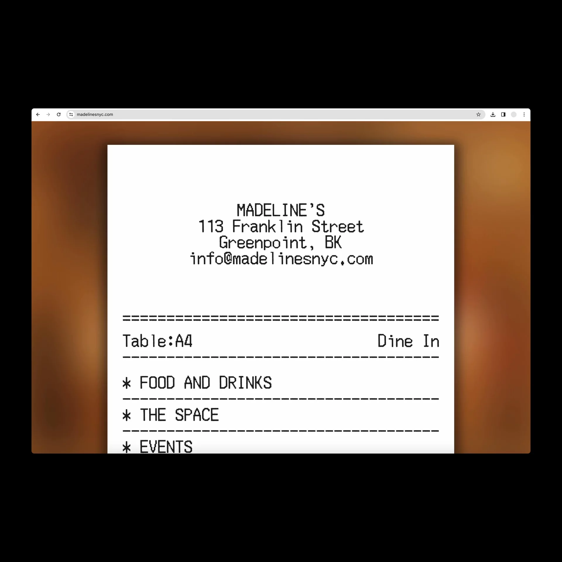 Madeline’s, known casually as MADS, is a newly opened restaurant and bar in Greenpoint, Brooklyn. Based around the owner’s life-long career in the restaurant industry and a cheeky sense of humor, Cotton designed a new brand and website for the space to reflect kitchen tickets and restaurant tabs, complete with corresponding “server lingo."